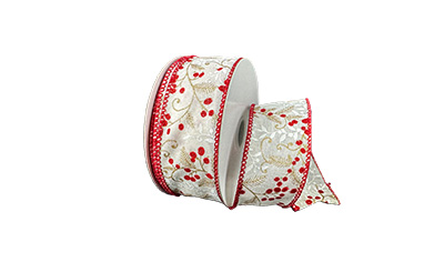 RBXMS #9 WE FESTIVE VINE W BERRIES GOLD RED NATURAL 20YD